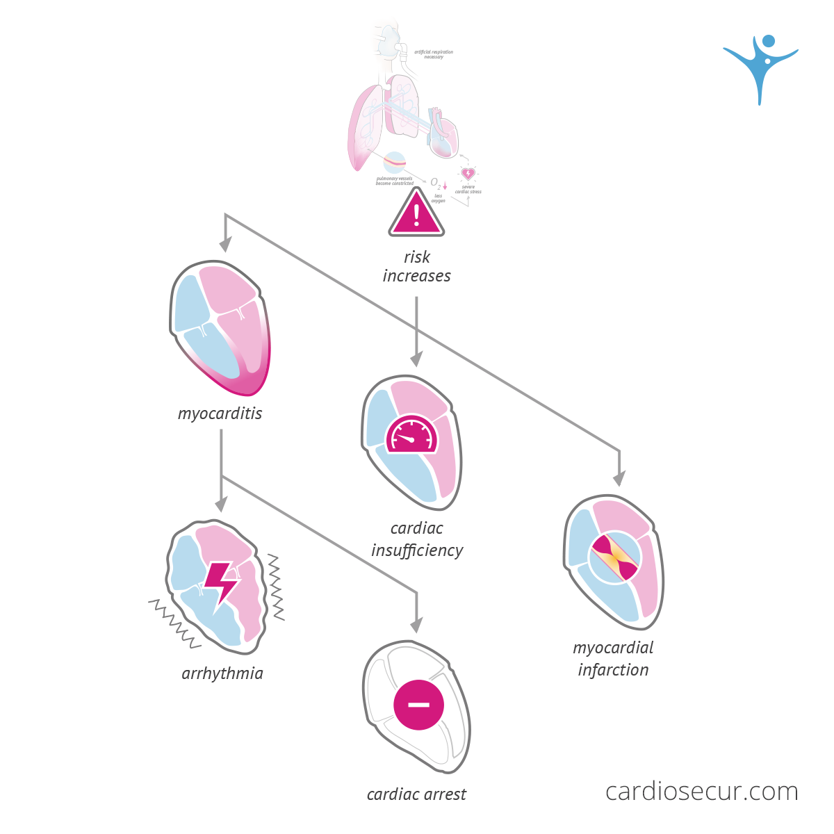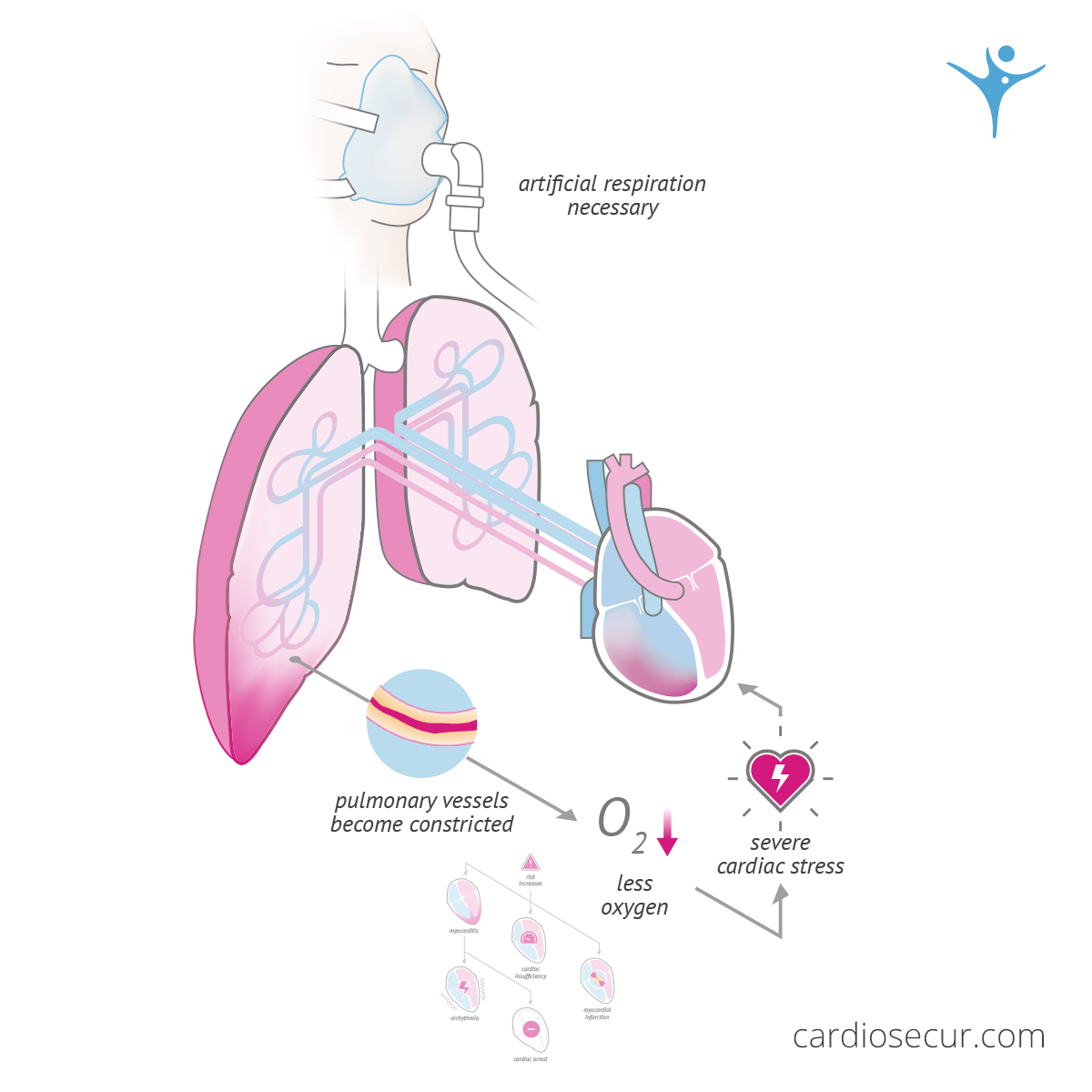 If the course of the disease requires artificial respiration, this means maximum stress for the heart - especially for the right half of the heart, as increased pressure and resistance in the small circulation (pulmonary circulation) occurs. This poses a particular challenge to the cardiovascular system and thus increases the risk of a heart attack or heart failure.